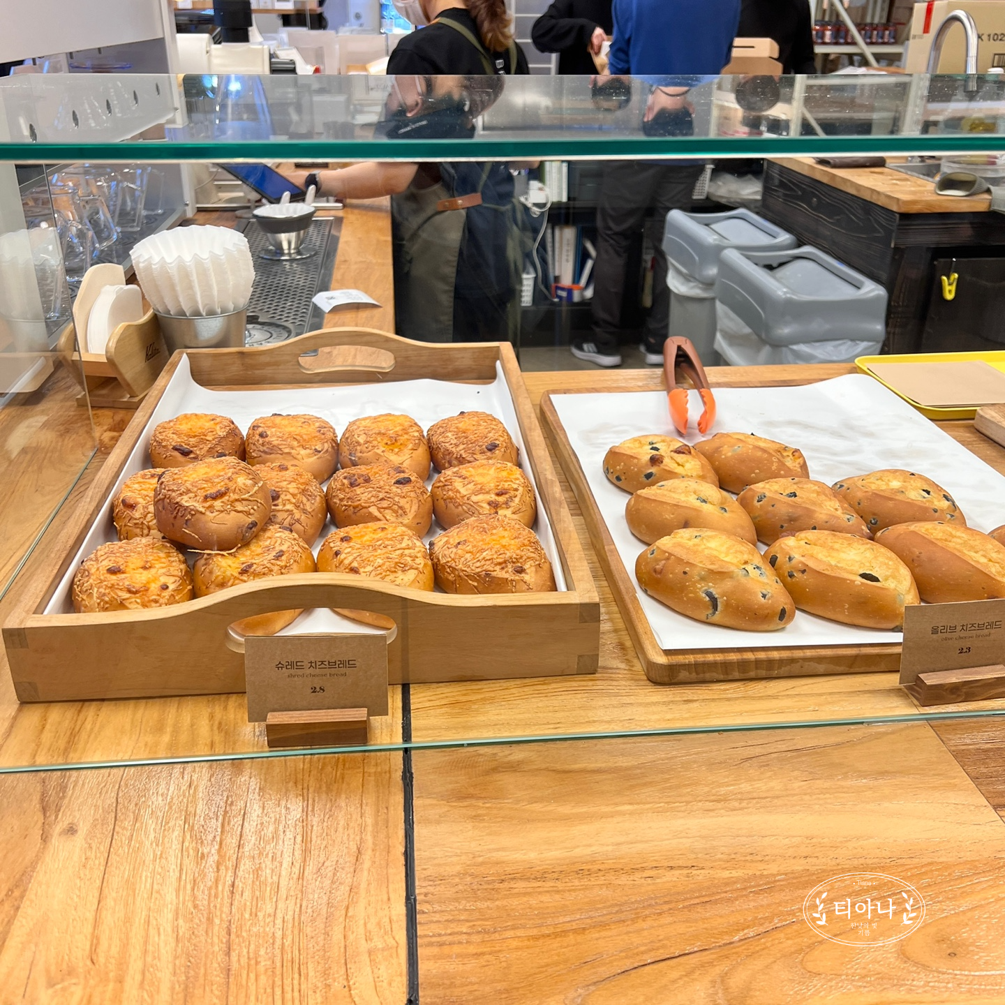 물건들을 구경하고 선물용 원두를 골라서 입구 쪽으로 가면 마켓 쪽에서 판매되는 제품들만 따로 계산해주는 곳이 있습니다. 계산을 하고 난 뒤에 카페 쪽에 있는 키오스크를 이용해서 커피를 주문했습니다. 짝지는 커피를 저는 정말 오랜만에 밀크 초콜릿을 주문했습니다. 커피를 주문하고 주변을 둘러보니 몇 종류 안되긴 하지만 정말 맛있어 보이는 빵과 쿠키도 판매되고 있었습니다.